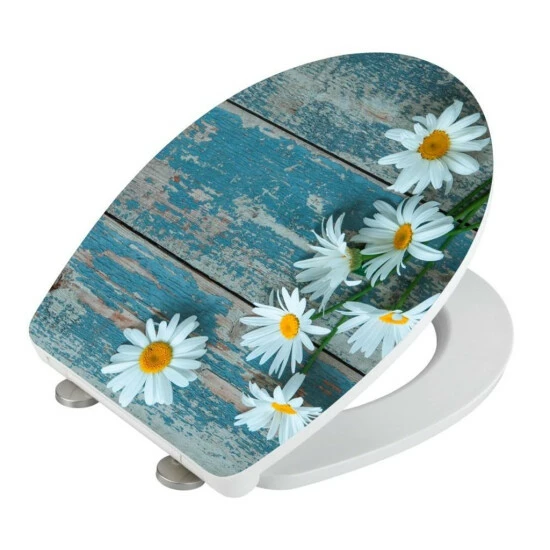 Die innovativen Acryl WC-Sitze von WENKO bringen frischen Schwung in jedes Bad und Gäste-WC. Der trendige WC-Sitz Asteride ist aus antibakteriellem, hochwertigem Duroplast gefertigt und mit einer hochglänzenden Acryloberfläche ausgestattet. Holen Sie sich Entspannung nach Hause! Das antibakterielle Duroplast sorgt für mehr Hygiene im Bad. Neben dem sommerlichen Margeriten-Motiv verfügt der komfortable WC-Sitz über praktische Zusatzfunktionen.