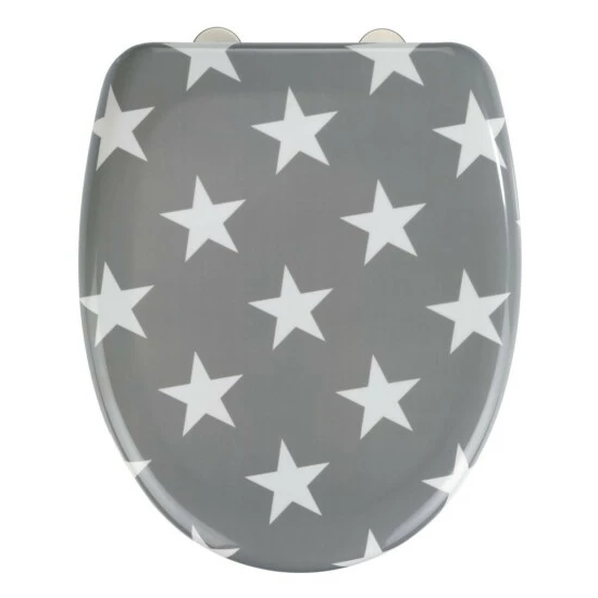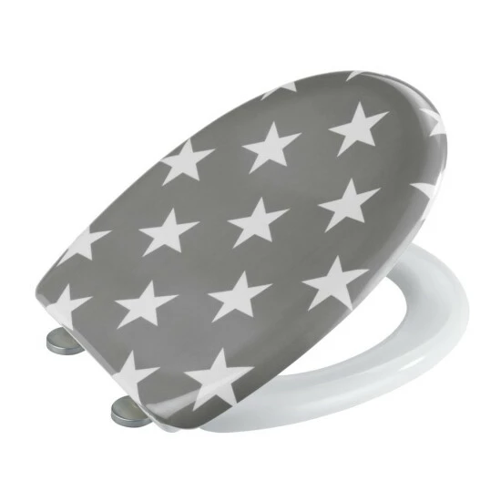 Als ein echtes Deko-Highlight präsentiert sich der im angesagten Sternen-Motiv gestaltete WC-Sitz Stella. In modernem Grau bietet er den perfekten Look für jedes Badezimmer und Gäste-WC.