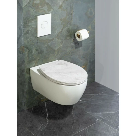 - Marmorstruktur: Die Oberseite des Toilettenbretts ist mit einem Steinstrukturdruck bedeckt. Dadurch eignet es sich ideal für Badeinrichtungen aus natürlichen oder rohen Materialien.