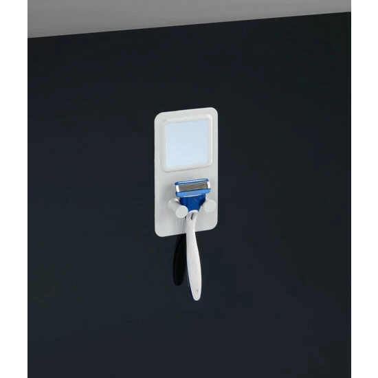 Der Rasierhalter mit Spiegel Ampio Weiß macht Ordnungsproblemen ein Ende. Der praktische Organizer für Bad und Gäste-WC ist aus hochwertigem, flexiblem Silikon gefertigt, was zahlreiche Vorteile mit sich bringt. Auf seinen beiden Haken erhält der Nassrasierer einen festen, griffbereiten Platz. Oder Sie nutzen die Haken für Halsketten, Armbänder und Haargummis. Der integrierte Spiegel ermöglicht einen zusätzlichen Blick auf Ihr Äußeres beim Schminken, Zähne putzen oder Rasieren.