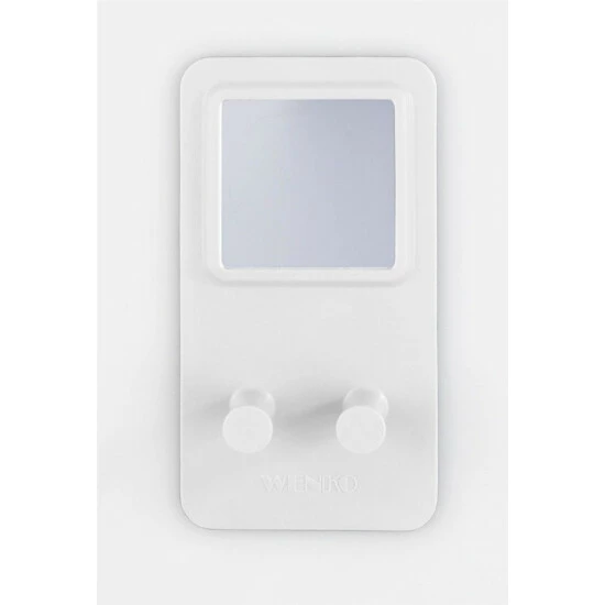 - Die Platte ist in zwei Teile unterteilt: zwei Haken und einen praktischen Spiegel.