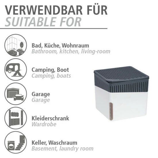 Der Design-Entfeuchter Cube von WENKO sorgt für weniger Feuchtigkeit und Wohlfühlklima! Dabei integriert sich der moderne Luftentfeuchter elegant in jeden Raum und schafft ein optisches Highlight in angesagter Cube-Form.