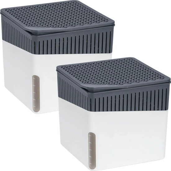 Im Lieferumfang sind zwei Design-Entfeuchter Cubes und zweimal 1 kg Calciumchloridblöcke enthalten.