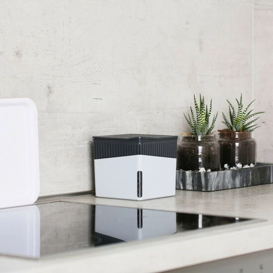 Der Design-Entfeuchter Cube von WENKO im stilvollen Weiß sorgt für weniger Feuchtigkeit und Wohlfühlklima! Dabei integriert sich der moderne Luftentfeuchter elegant in jeden Raum und schafft ein optisches Highlight in angesagter Cube-Form.