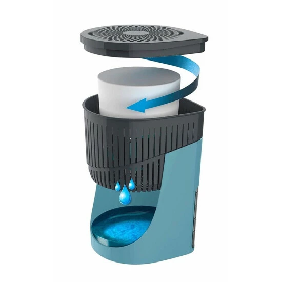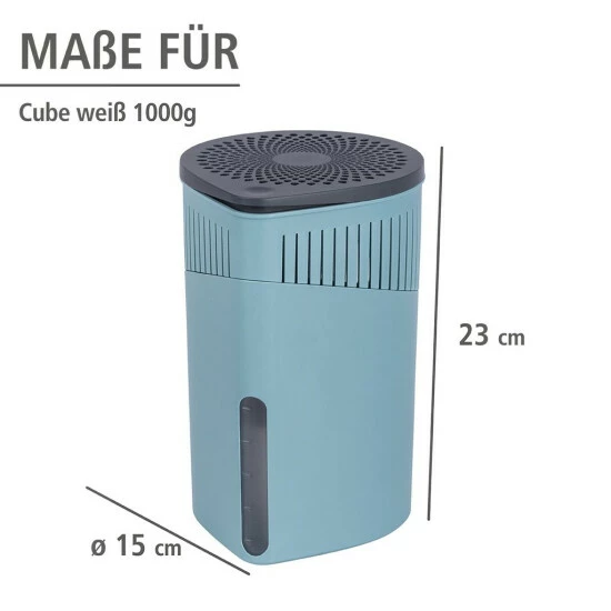 Der Luftentfeuchter kommt völlig ohne Strom aus. Er entzieht der Umgebungsluft Feuchtigkeit für bis zu 3 Monate. Natürlich sind passende Nachfüllpacks von WENKO unter den Artikelnummern 50270100 und 50271100 erhältlich.