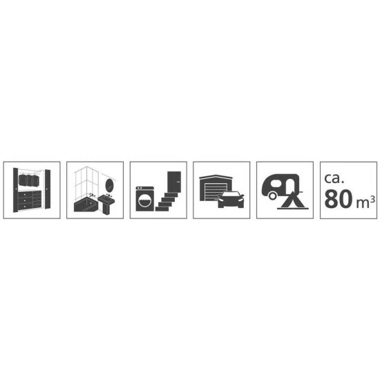 Der clevere Entfeuchter eignet sich ideal für Räume von bis zu 80 m³. Im Feuchtigkeitsentferner sind 1.000 g Calciumchlorid enthalten, das sofort nach dem Aufstellen beginnen, die Feuchtigkeit aus der Umgebung zu ziehen. Das sich im Raumentfeuchter sammelnde Wasser kann durch die integrierte Wasserstands-Anzeige jederzeit sicher abgelesen werden und ist ein Beleg für die Effektivität des Feuchtigkeitskillers von WENKO.