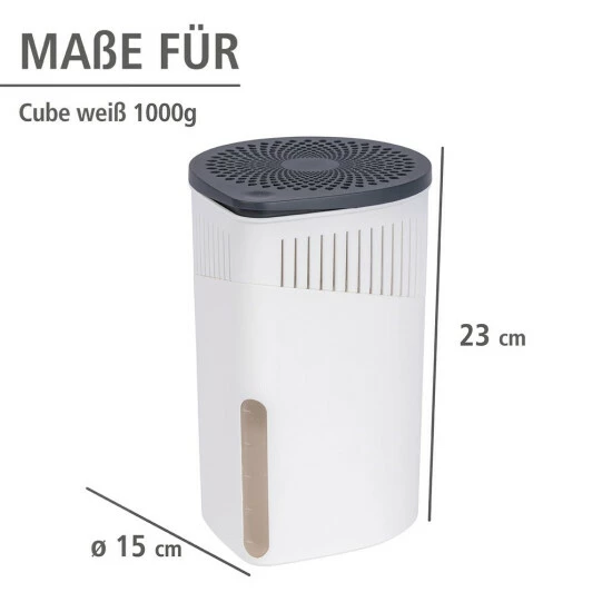 Wenko Luftentfeuchter Dieser Luftentfeuchter schützt vor Schimmel. Der Luftentfeuchter entfernt überschüssige Feuchtigkeit und verhindert so Kondenswasserbildung und schlechte Gerüche in Räumen bis zu einer Größe von 80 m³. Spezifikationen: Farbe: grau, weiß Material: Kunststoff Gewicht: 1000 Gramm Inhalt: 1,6 Liter Raum: bis zu 80 m³ Abmessungen: 15 x 23 x 15 cm (LxBxH)