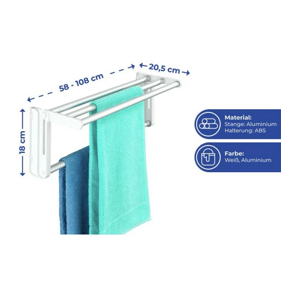 - Bietet ausreichend Platz zum Trocknen von Handtüchern, kleineren Wäschestücken, etc. Maximale Trockenlänge: ca. 4,15 m.