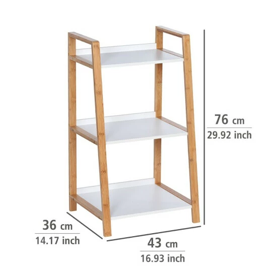 Und hier kommt das WENKO Badregal zu Hilfe, das auch in einem kleinen oder schlecht gestalteten Badezimmerraum einwandfrei funktioniert. Es nimmt nicht viel Platz in Anspruch, und in seinen Regalen können Sie eine wirklich große Menge an Dingen speichern. Es ist in neutraler Bambusfarbe mit weißen Regalen.