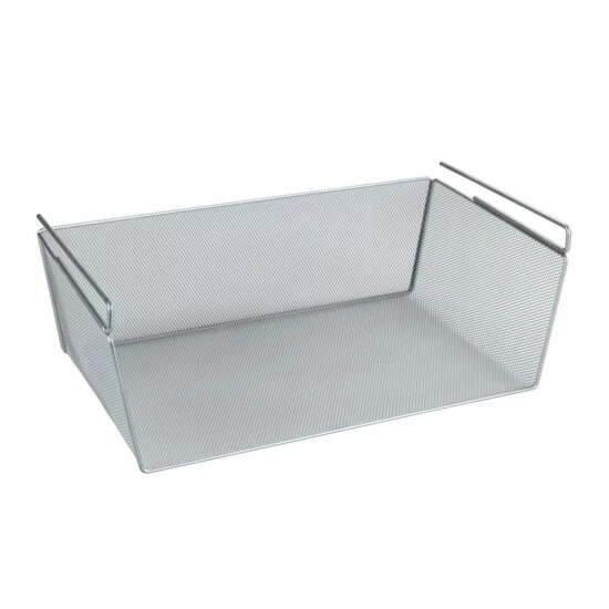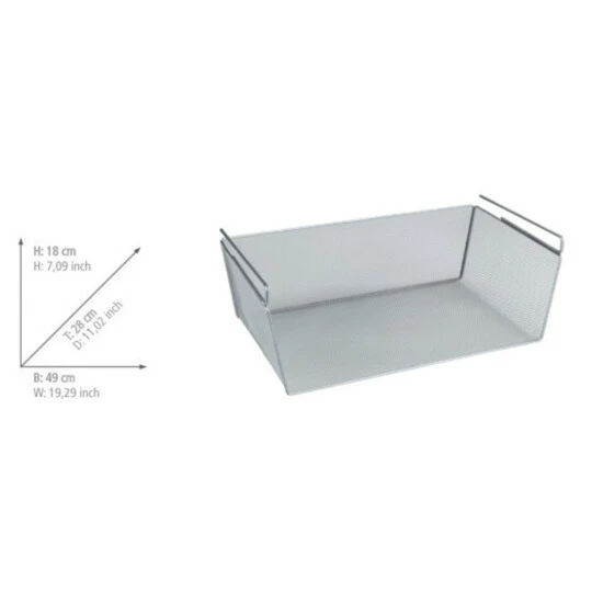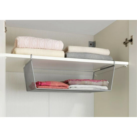 Dieser praktische Regaleinhängekorb aus Metall wird einfach an einen Regal- oder Schrankboden eingehängt. So schafft der Ablagekorb zusätzlichen Stauraum in Küche, Schlafzimmer und im gesamten Haushalt.