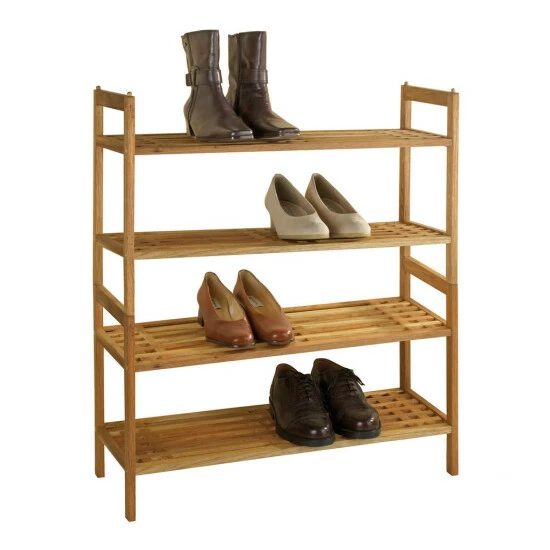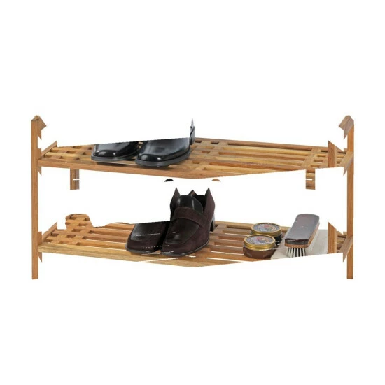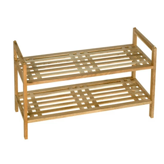 Dieses Schuhregal aus Naturholz vermittelt eine warme Wohnatmosphäre. Die Kombination aus Design und Funktionalität macht dieses Möbelstück zu einem perfekten Möbelstück für Ihr Zuhause. Mit zwei Regalen haben Ihre Schuhe sofort einen dekorativen Stauraum. Es ist stapelbar, so dass es leicht erweitert werden kann
