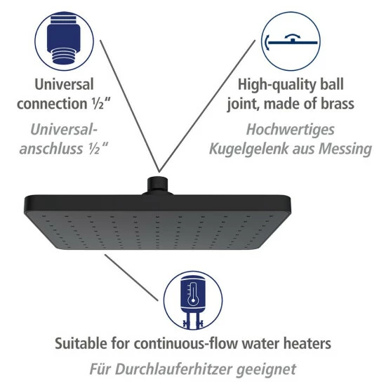 Die Brause verfügt über einen Universalanschluss mit 1/2 und ist natürlich auch für Durchlauferhitzer geeignet.