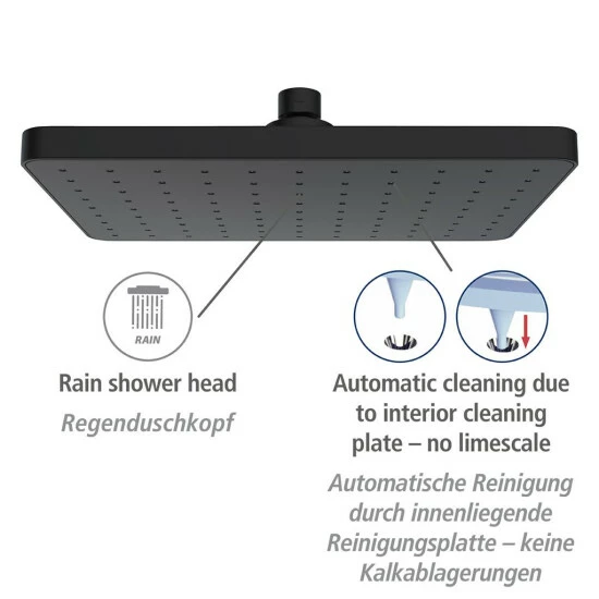 Verwandeln Sie im Handumdrehen Ihr Badezimmer in eine Wellness-Oase. Bei der Regendusche mit eckigem Regen-Duschkopf Automatic Cleaning entspannt ein sanfter, angenehmer Tropenschauer beim Duschen.