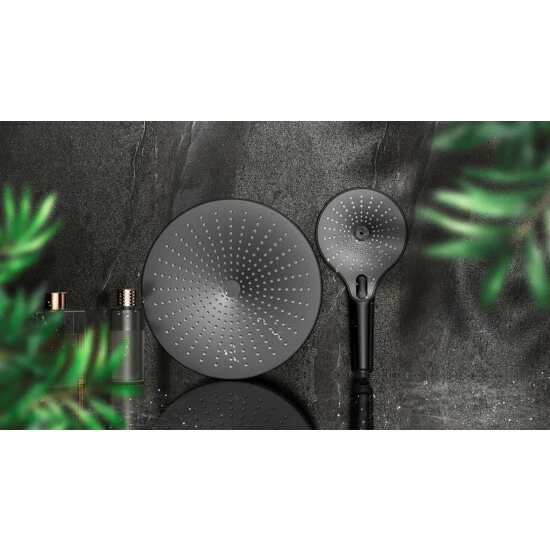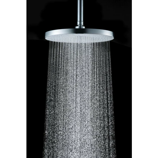 284 Düsen erzeugen den samtigen Regenschauer, der pure Entspannung und eine effektive Reinigung zugleich ermöglicht. Dabei wird die beregnete Fläche in der Duschkabine durch die 0,5° Technologie erhöht, denn jede Düse ist um 0,5° nach außen geneigt. Dennoch ist der Regenduschkopf mit einem Durchmesser von Ø 25 cm besonders spritzwasserarm, sodass nach der Dusche keine weitere Arbeit auf Sie wartet.