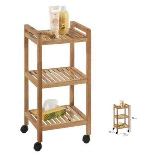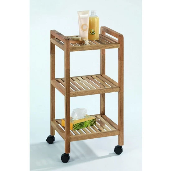 Badezimmerwagen NORWAY aus massivem Nussbaumholz. Perfekt für die Aufbewahrung von Handtüchern, Bademänteln und anderen Badutensilien. In der Rolle vom Badregal wird helfen, den Raum clever zu organisieren und gleichzeitig nicht viel Platz in Anspruch zu nehmen. Ausgestattet mit 3 Ablagen und 4 Rollen, die leichte Bewegung überall ermöglichen. Leicht zu reinigende Oberfläche. Sicherlich funktioniert das Rollregal in einem kleinen Badezimmer genauso gut wie in einem Schönheitssalon oder einem SPA. Es wird sich gut an Öko-Interieurs anpassen.
