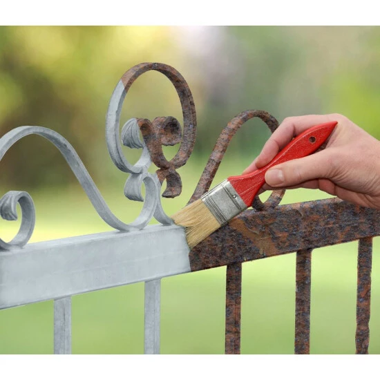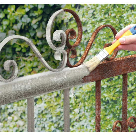 Präparat zum Entfernen von Rost zusammen in einer Grundierung. Bietet 100% Korrosionsschutz bei 50% Arbeit. Bei der Herstellung wird Rost in eine stabile anorganische Schutzschicht umgewandelt, die stark an der Metalloberfläche haftet. Dadurch wird eine spezielle Grundierung erzeugt, die zum Auftragen der nachfolgenden Lackschichten bereit ist. Das Produkt eignet sich für die Wiederherstellung von Zäunen, Türen, Metallkonstruktionen, Möbeln usw. Es kann im Temperaturbereich von + 10 ° C – + 40 ° C verwendet werden. Alles, was Sie tun müssen, ist eine Bürste oder Sprühpistole.