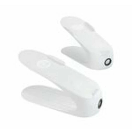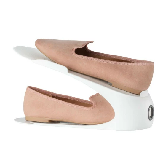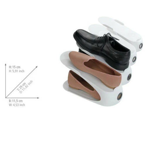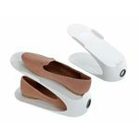 Mehr Platz und Ordnung im Schuhschrank gesucht? Der clevere Schuhhalter bietet 50 % mehr Platz im Schuhschrank. Die Schuhe werden ganz einfach paarweise übereinander gestapelt und vor Druckstellen und Kratzern geschützt.