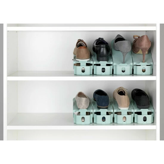 Spart bis zu 50% Platz: Mit dem 8-teiligen Schuhstaplerset nutzen Sie den Stauraum im Schuhregal optimal aus und schaffen mehr Platz für die Schuhaufbewahrung