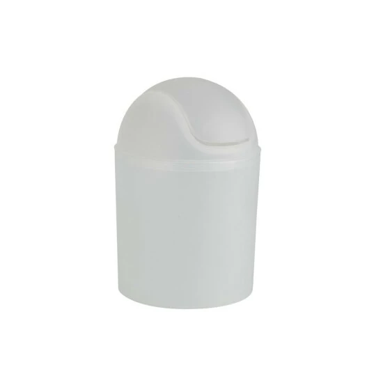 Der Schwingdeckeleimer Arktis von WENKO in der Farbe Weiß gefrostet ist ein nützlicher dezenter Helfer in Bad und Küche.