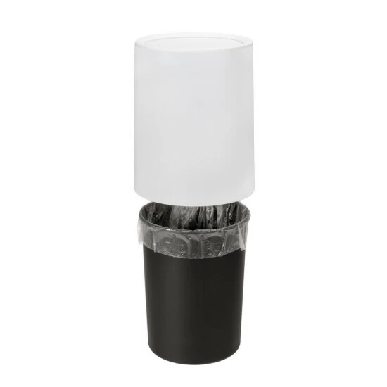 TheATri Mülleimer, 6 l von der deutschen Firma WENKO ist ein Badzubehör, mit dem Sie Kosmetikabfälle bequem und ästhetisch aufbewahren können. Der Korb hat einen kippbaren Deckel. Es wurde aus hochwertigem Kunststoff in mattschwarzer Farbe hergestellt. Es hat eine herausnehmbare Patrone, dank der Sie den Beutel so verdecken können, dass er nicht nach außen herausragt. Damit ist das Entleeren des Behälters schnell und hygienisch. Die Abmessungen des Behälters sind: Bodendurchmesser 21,2 cm, oberer Durchmesser 19,6 cm, Höhe 25,5 cm.