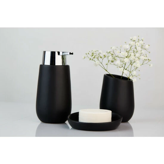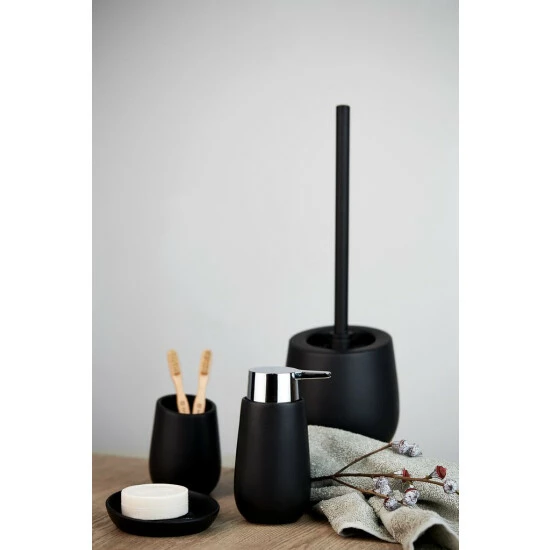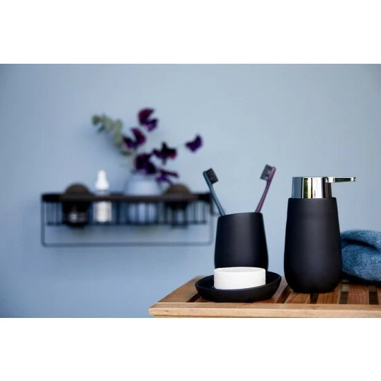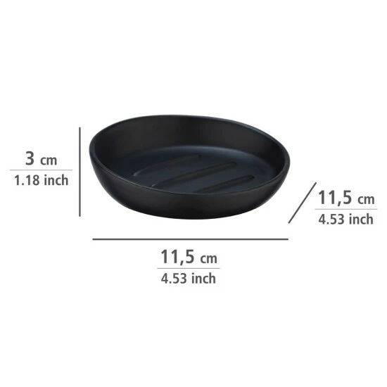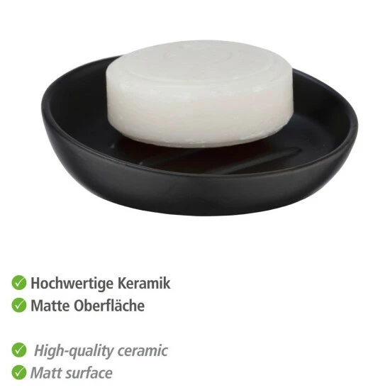 Im klassischen, schwarzen Gewand mit matter Oberfläche wird die Seifenablage Badi zu einem Blickfang in jedem Badezimmer und Gäste-WC.