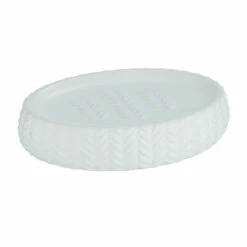 Mit einer Abmessung von (B x H x T): 12,3 x 2,7 x 8,7 cm bietet die wohlgeformte Handseifenablage ausreichend Fläche, um Kernseife einen attraktiven Platz zu geben. Darüber hinaus passt das Bad-Zubehör ideal auf den Waschbeckenrand, so haben Sie und Ihre Gäste die Seife stets in greifbarer Nähe. Die strukturierte Oberfläche verhindert zudem ein Verrutschen des Seifenstücks. Keramik lässt sich leicht reinigen und eventuelle Seifenreste somit mühelos abspülen! Die stilvolle Ablage für Stückseife stellt auch eine ansprechende Lösung zur repräsentativen Positionierung von Kernseife in der Küche dar. Zur dekorativen Aufbewahrung von Shampoo und Spülung in der Dusche oder als Ablagefläche für festes, verpackungsfreies Duschgel auf dem Badewannenrand eignet sich das Schmuckstück ebenfalls über alle Maßen!