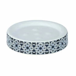 Seifenschale ist ein Produkt, das in einem gut ausgestatteten Badezimmer nicht verpasst werden kann. Auch ideal für Küche oder Gäste-WC. Es ist nicht nur praktisch, sondern sehr hübsch, so dass es auch eine stilvolle Dekoration des Raumes sein wird, in dem es sich befindet. Es besteht aus hochwertiger Keramik und das geprägte Muster sieht sehr originell aus. Das Tablett hat Laschen, die sicherstellen, dass die Seife auf ihm bleibt an Ort und Stelle. Ein schönes blaues symmetrisches Muster kann marokkanischer Stilistik entsprechen. Wenn das Badezimmer in einem klassischen oder modernen Stil fertig ist, schafft eine solche Seifenschale einen interessanten Kontrast und verleiht dem Raum einen Hauch von orientalischem.