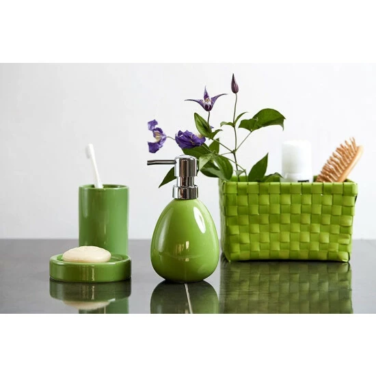 Die Bad-Accessoires Serie Polaris zeichnet sich durch moderne Formen und hochwertige Keramik aus. Das frische Grün verleiht jedem Badezimmer farbvolle Eleganz.