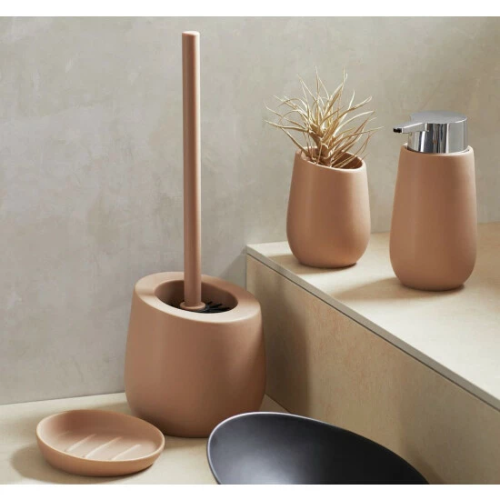 Im harmonischen Sandton mit matter Oberfläche wird der Seifenspender Badi zu einem Blickfang in jedem Badezimmer und Gäste-WC.