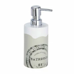 Die Bad-Accessoires Serie Bathroom zeichnet sich durch trendige Formen und hochwertige Keramik aus. Der ausgefallene Aufdruck im angesagten Design verleiht jedem Badezimmer stilvolle und moderne Eleganz. Der praktische Seifenspender kann individuell mit 310 ml Flüssigseife oder Waschlotion gefüllt werden. Durch leichten Druck auf den Dosierknopf wird die gewünschte Menge Seife bzw. Lotion herausgepumpt.