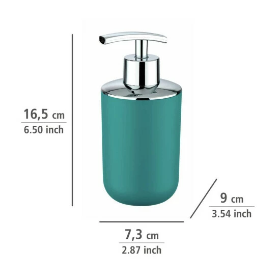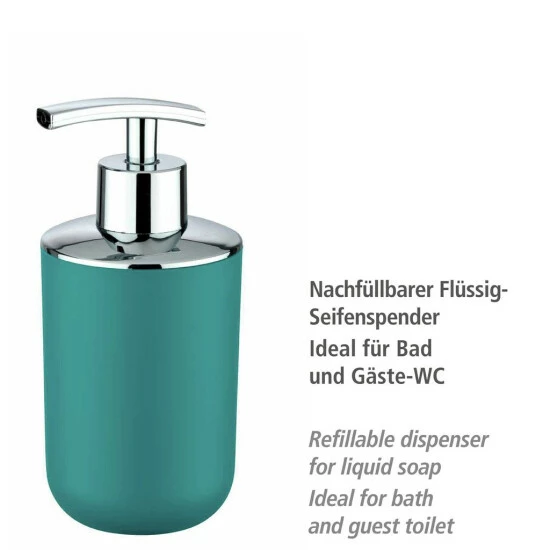 Elegant und besonders stabil ist der Seifenspender Brasil. Der in einem trendigen Petrol gehaltene Spender überzeugt durch Qualität und Design.