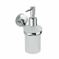 Eine geschmackvolle Kleinigkeit wird nicht nur das Innere schmücken, sondern auch die Organisation des Badezimmers erleichtern. Flüssigseifenspender Cuba, an der Wandhalterung aufgehängt, spart Platz auf der Spüle Arbeitsplatte und erleichtert die Organisation. Die Kombination aus milchig-weißem Glas und glänzendem Metall schafft ein Schmuckstück im guten Geschmack. Der Spender passt zu den zarten Ornamenten von Retro-Bädern oder provenzalischen Stil. Es wird gut sein, mit Marmorfliesen oder Pastellfarben der Wände zu mischen. Der Flüssigseifenspender Cuba wird mit Hilfe der im Set enthaltenen Schrauben und Dübel an der Wand befestigt. Separat ist eine selbstklebende Power-Loc Unterlegscheibe verfügbar, um Bohrungen zu vermeiden. Der Spender funktioniert gut montiert in der Duschkabine. Es wird den Erwerb von gleichen Teilen von Seife, Conditioner, Waschgel oder Shampoo erleichtern.