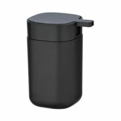 Befüllen können Sie den formschönen Alltagshelfer entweder mit bis zu 350 ml Flüssigseife oder Lotion in Bad und Gäste WC, oder auch mit Spülmittel für den Einsatz in der Küche sowie mit Desinfektionsmittel. Sie sehen, das Accessoire bietet einen absoluten Mehrwert, auch in den anderen Räumen Ihrer vier Wände. Das einfach gehaltene Badutensil ist aus hochwertigem Kunststoff gefertigt. Das langlebige Material ist genau das passende, um den vornehmen All-Black-Look einziehen zu lassen. Darüber hinaus ist der Seifendosierer frei von Bisphenol A, einer chemischen Verbindung, die der Gesundheit schaden kann. BPA freie Produkte stärken zudem das Bewusstsein für Nachhaltigkeit, denn sie schonen unsere Umwelt.