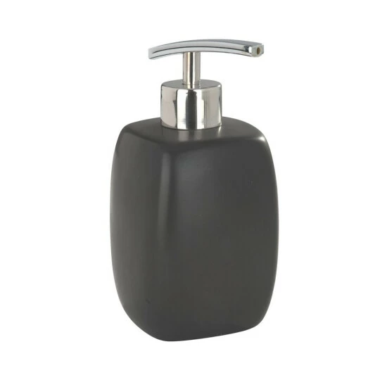 Spender für Seifenkeramik FARO, Farbe schwarz, WENKO ist ein Zubehör für das Waschbecken im Badezimmer notwendig. Jedes zeitlose Badezimmer sollte vor allem zwei Bedingungen erfüllen: Es muss sowohl funktional als auch stilvoll sein. Um dies zu erreichen, genügt es, scheinbar geringfügige Änderungen vorzunehmen und kleine, aber gleichzeitig geeignete Gegenstände wie Kosmetikorganisatoren, Hygienebehälter oder Seifenschalen zu kaufen.