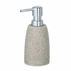 - Lieferumfang: nachfüllbarer Pumpspender Goa in Hellgrau von WENKO, aus schwerem Polyresin, Maße (B x H x T): 9 x 16 x 7,4 cm, Füllmenge ca. 210 ml.