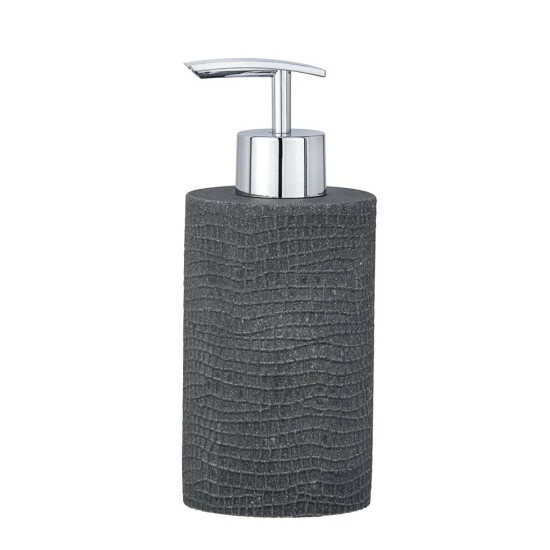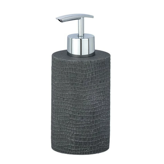 Nachfüllbarer Erdnussspender ist sicher nützlich in jedem Badezimmer! Anstelle von Seife im Würfel bevorzugen Sie Flüssigseife zum Händewaschen? Rüsten Sie Ihr Badezimmer Interieur mit einem Erdnussspender mit ungewöhnlichem Design aus, das neben praktischen Anwendungen eine attraktive Dekoration des Raumes wird. Nachdem Sie die praktische Pumpe leicht gedrückt haben, erhalten Sie die richtige Menge an Flüssigkeit, die benötigt wird, um Ihre Hände gründlich zu waschen. Sie können das Produkt auch in der Küche neben der Spüle einstellen und die Geschirrspülflüssigkeit darin aufbewahren. Der Peanut Spender mit modernem Design bietet Platz für 240 ml Flüssigseife, Spülmittel, Shampoo, Haarspülung oder andere Produkte. Das Produkt mit den Maßen 7 x 16,5 x 7,5 cm besteht aus Polyresin in einer unverwechselbaren Anthrazitfarbe mit einer einzigartigen Struktur, die ihm einen originellen Charakter verleiht.