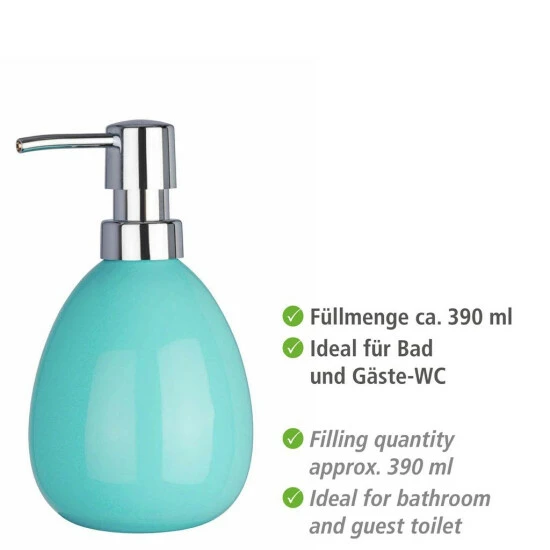 - Lieferumfang: Seifenspender Polaris von WENKO, Flüssigseifenspender aus Keramik, Maße (B x H x T): 10 x 16,5 x 9,4 cm, Füllmenge 390 ml