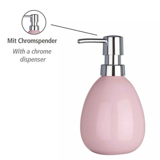Wenko 22423100 Seifenspender Polaris Pastel Rose Flüssigseifen-Spender Fassungsvermögen 0.39 L, Keramik, Rosa, 9 x 9.5 x 16 cm