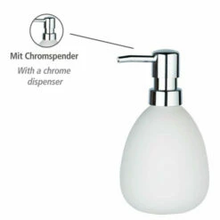 Durch die dezente Farbgebung und das besondere Design bringt der geschmackvolle Seifenspender elegantes Flair in die heimischen vier Wände.