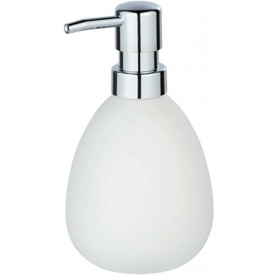 Der Seifenspender Polaris Weiß kann individuell mit bis zu 390 ml Flüssigseife oder Waschlotion gefüllt werden. Durch leichten Druck auf den Dosierknopf wird die gewünschte Menge Seife oder Lotion herausgepumpt.