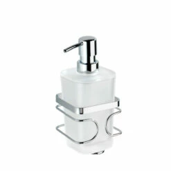 Hochwertige Qualität aus glänzendem Edelstahl. Inkl. Schrauben und Dübel. Abnehmbarer Seifenspender mit Soft-Touch Beschichtung. Alternativ auch Befestigung ohne bohren möglich: mit Vacuum-Loc, Turbo-Loc oder Power-Loc Adapter.