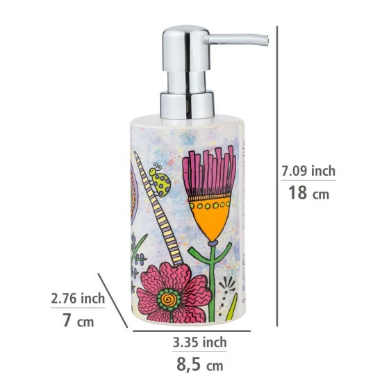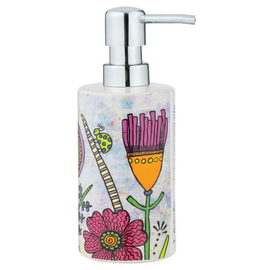 Ausflug in die Natur – der entzückende Seifenspender Rollin’Art Full Bloom von WENKO bringt eine bunte Blumenwiese mit ihren tierischen Bewohnern und exotischen Pflanzen direkt in Ihr Badezimmer. Farbenpracht und Artenvielfalt – kann es etwas Schöneres geben?