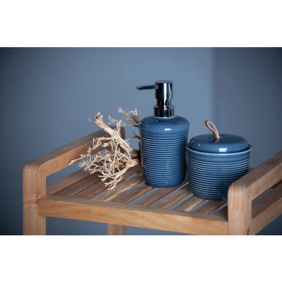 Die Bezeichnung Navy Blau stammt im Übrigen von den Uniformen der Offiziere der britischen Royal Navy. Marineblau ist die deutsche Übersetzung der tiefen, gesättigten Nuance von Blau. Der an den Ozean erinnernde Spender eignet sich hervorragend zum Einsatz im Bad und Gäste-WC. Die Pumpflasche ist aus hochwertiger Keramik gefertigt. Das Material ist robust und verschleißbeständig zudem zeichnet es eine hohe Formstabilität aus. Der Dosierkopf ist aus Kunststoff gefertigt, durch einfachen Druck auf den Pumpkopf wird die gewünschte Menge Flüssigkeit aus dem schmalen Auslauf gepumpt. Seifenreste können mit einem feuchten Tuch spielend leicht von der glatten Oberfläche entfernt werden. Gleiches gilt für Geschirrspülmittel, denn das schöne Accessoire eignet sich ebenfalls als Spülmittelspender in der Küche.