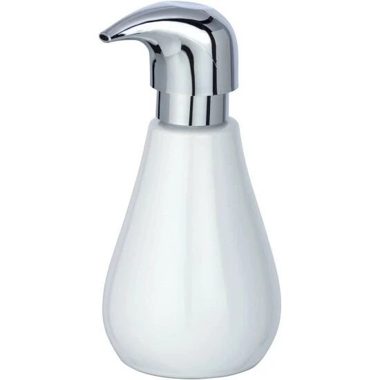 WENKO Seifenspender Sydney Weiß Glänzend – Flüssigseifen-Spender, Spülmittel-Spender Fassungsvermögen: 0.32 l, Keramik, 8.5 x 17 x 9 cm, Weiß