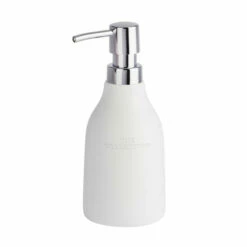 Wenko Seifenspender The Collection Material: Polyresin Farbe: Weiß Maße: ca. 8 x 18,5 x 9 cm Füllmenge: 330 ml Mit graviertem Schriftzug The Collection