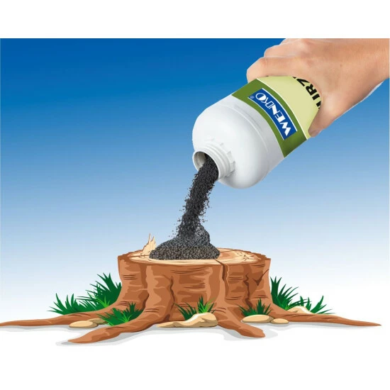 Das Entfernen von Baumstümpfen gerät schnell zur schweißtreibenden und zeitraubenden Arbeit, da das Wurzelwerk von Bäumen oft bis tief in die Erde reicht. Mit dem Wurzel-weg ersparen Sie sich diese Mühe und beseitigen Stolperfallen auf einfache und bequeme Weise. Das hochwirksame Wurzel-weg-Granulat beschleunigt den Zersetzungsprozess des Holzes und macht für Sie die Arbeit!