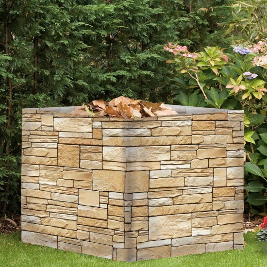 DieNachbildungfolie mit dezentem Mauer-Motiv passt sich der Fassade an und bringt Ordnung auf die Terrasse oder in den Garten. Die witterungs- und UV-beständige Folie ist dabei nicht nur dekorativ sondern ein optimaler Sichtschutz.