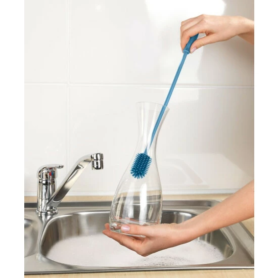 - mit seiner Hilfe können Sie Flaschen und Gläser sowie andere Gerichte, die mit einem gewöhnlichen Schwamm schwer zu waschen sind, gründlich reinigen.