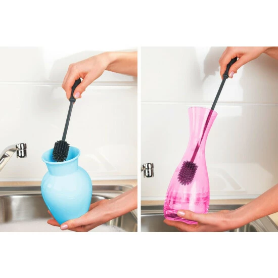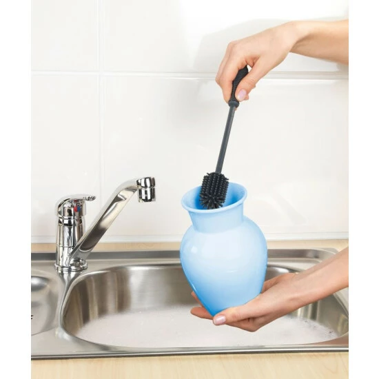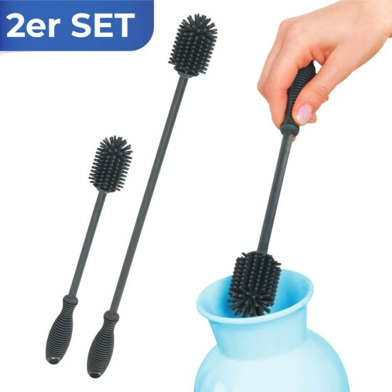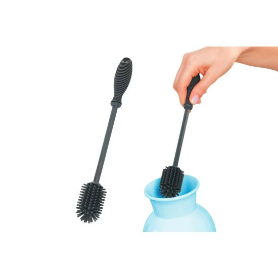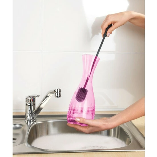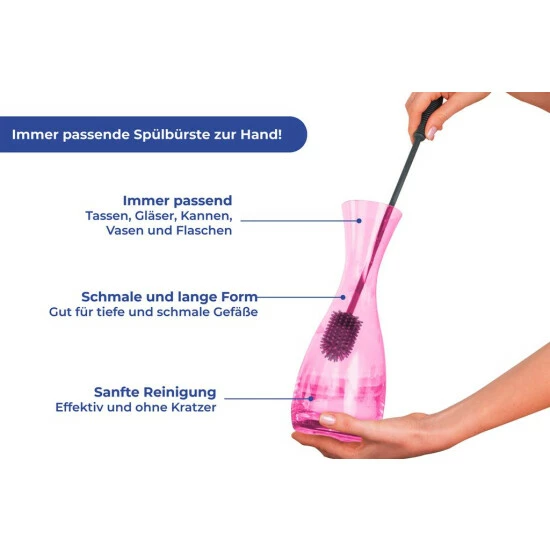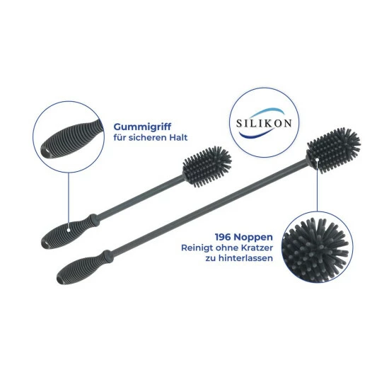 So lassen sich ganz leicht Tassen, Gläser oder Flaschen und Kannen reinigen. Die Bürsten verfügen über 196 Noppen aus Silikon und reinigen sanft, ohne Kratzer zu hinterlassen und vor allem hygienisch. Der schmale Bürstenkopf mit Ø 3,5 cm kann aufgrund seines langen Stieles auch tiefe Gefäße mit engen Öffnungen perfekt reinigen.