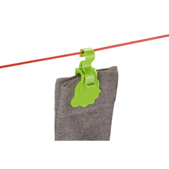 Die Klammern verfügen über einen integrierten Aufhänger für die Wäscheleine oder den Wäscheständer.